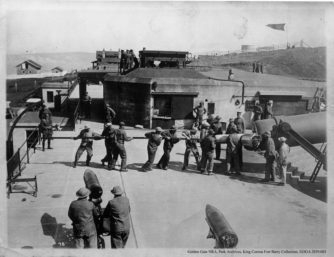 Although the Headlands batteries never once fired at enemy forces, they were consistently staffed by over 100 soldiers from the Coast Artillery Corps, the branch of the U.S. Army responsible for coastal, harbour and anti-aircraft defenses from 1901 to 1950. These soldiers and their support personnel lived at Fort Barry, an army post established on the Headlands in 1908.