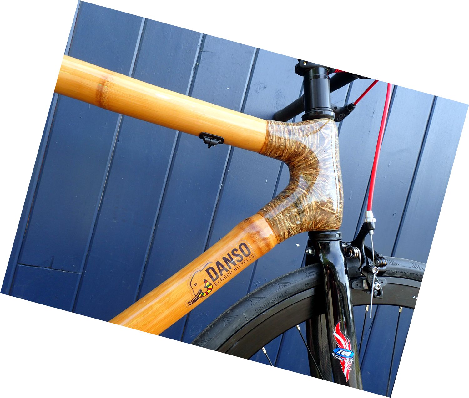 Danso Bamboo Bicycle – head tube Published September 7, 2018 at 1500 × 1272 in A bicycle made of bamboo ← Previous Next → Thick sisal wrap on the head tube.