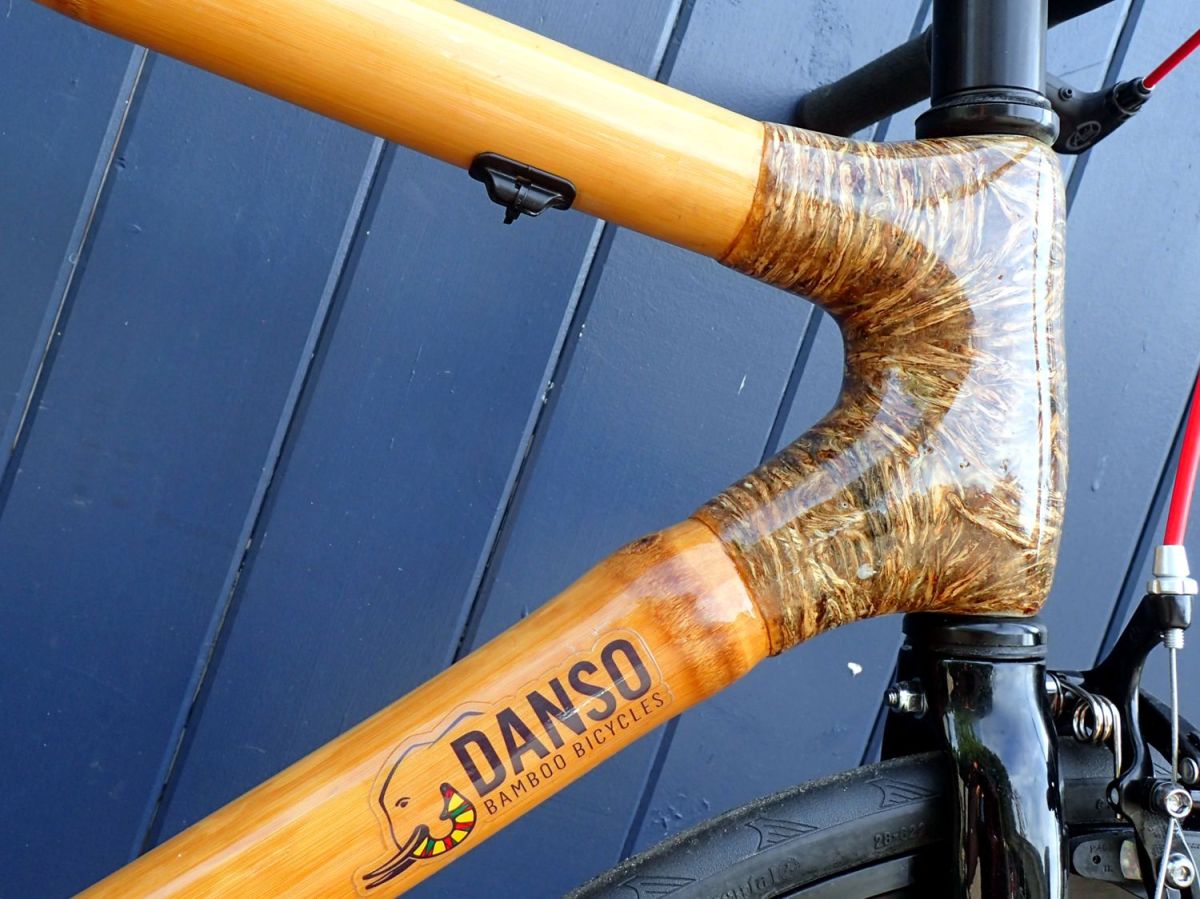 Danso Bamboo Bicycle – head tube wrap Published September 7, 2018 at 1500 × 1124 in A bicycle made of bamboo ← Previous Next → Beautiful polyurethane-coated sisal wrap on the head tube.