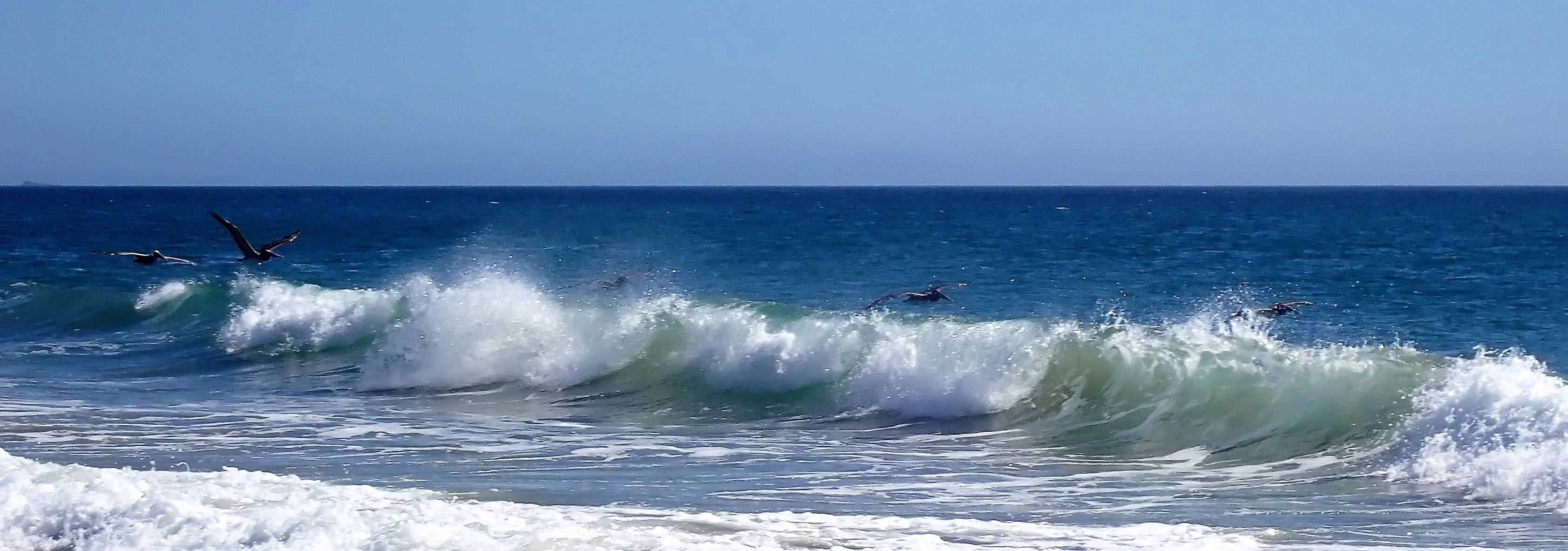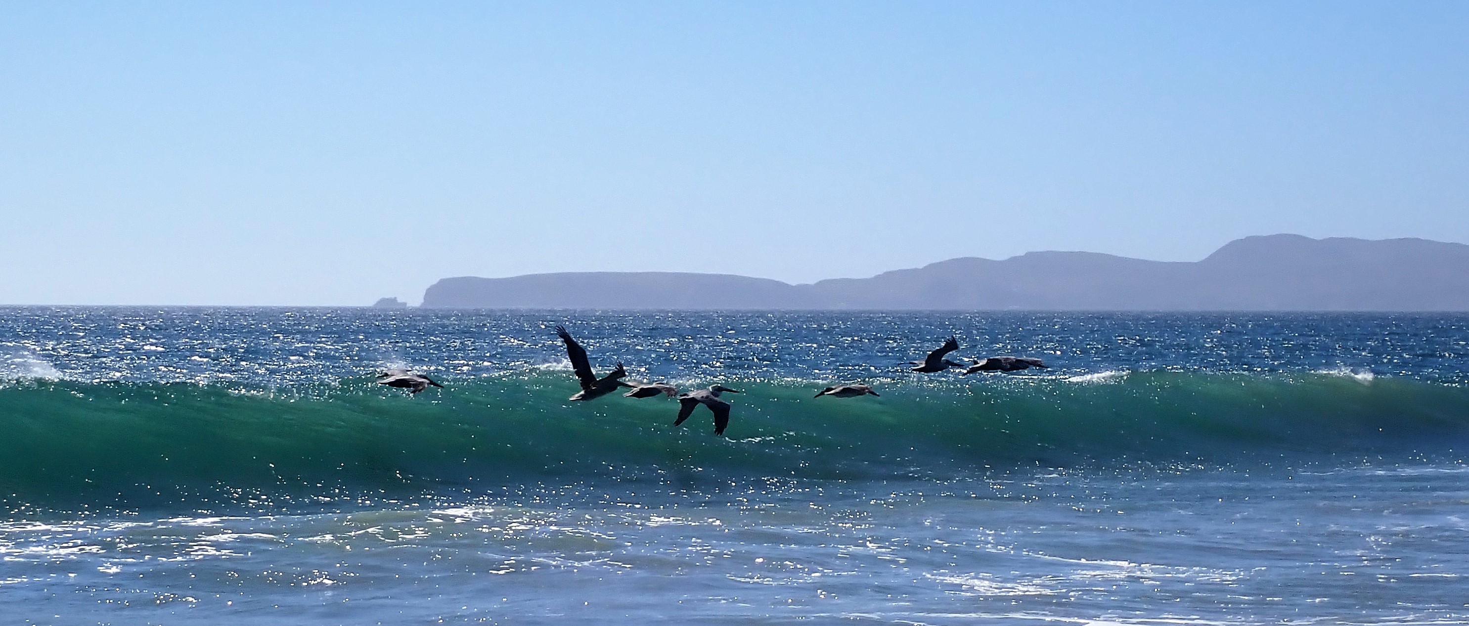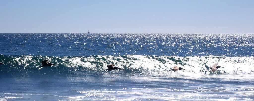 So these pelicans aren’t playing in the surf, they’re surfing air currents. And they’re not seeking adrenaline, but ease.